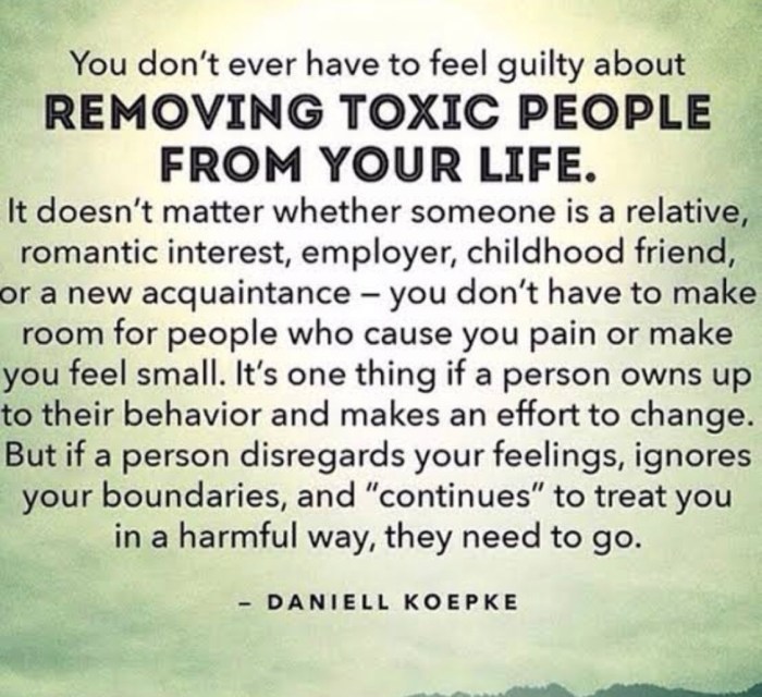- Lies – Toxic people do not embrace the truth. The truth is scary for all of us at times, but toxic people will often be pathological in their inability to see or accept any truth that does not suit their skewed and self-serving view of the world. Don’t let people like this close you. And also, try to be honest with yourself, even about the actions and activities of toxic people who weasel their way into your world.